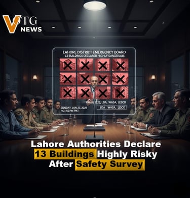 Lahore’s district administration has officially declared 13 buildings as highly dangerous following a citywide safety survey, raising serious concerns about structural integrity and public safety in the provincial capital. The decision was taken during a meeting of the District Emergency Board, chaired by Deputy Commissioner Muhammad Ali Ijaz, after inspections of 833 buildings across Lahore. Multiple government departments, including Rescue 1122, Lahore Development Authority (LDA), Water and Sanitation Agency (WASA), and Lahore Electric Supply Company (LESCO), participated in the review.