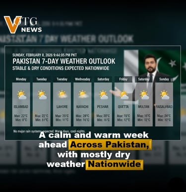 As Pakistan moves through the coming week, weather conditions are expected to remain largely stable and dry across most parts of the country. Forecast trends indicate warm daytime temperatures, cooler nights in northern areas, and hazy skies in several regions. No major rain systems are expected nationwide, making this a relatively calm weather week. Below is a detailed 7-day outlook covering major regions of Pakistan.