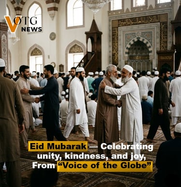 While Eid is rooted in faith, its message is universal: peace, generosity, compassion, and unity. These are the values that shape a better world—and they are the values we aim to uphold at Voice of the Globe.