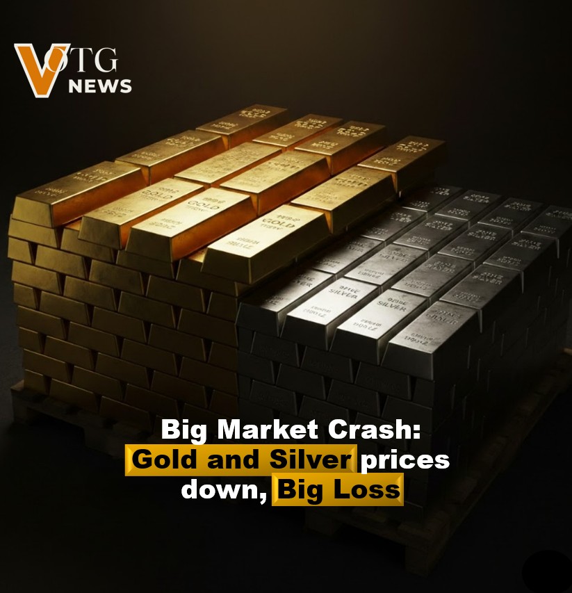 After a strong rally fueled by safe-haven demand, both metals experienced heavy selling pressure. Gold slipped sharply, while silver saw even deeper losses, falling far faster due to its higher volatility and industrial exposure. Analysts describe the move as one of the most aggressive corrections seen in recent years.