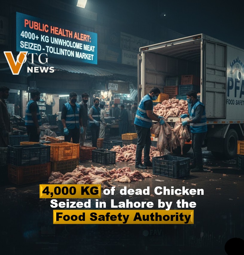 The Punjab Food Authority (PFA) has carried out a significant food safety operation, seizing more than 4,000 kilograms of dead and diseased chicken meat during an early-morning inspection in Lahore. The raid took place at Tollinton Market, one of the city’s major meat supply hubs, and is being seen as a strong step toward protecting public health.
