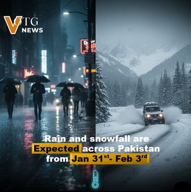Rain, Snowfall, and Cold Conditions Expected Across Pakistan Pakistan is set to experience an active spell of winter weather from January 31 through February 3, as a western disturbance moves across the region. According to weather forecasts, this system will bring rain, snowfall, and a noticeable drop in temperatures, particularly in northern and hilly areas.